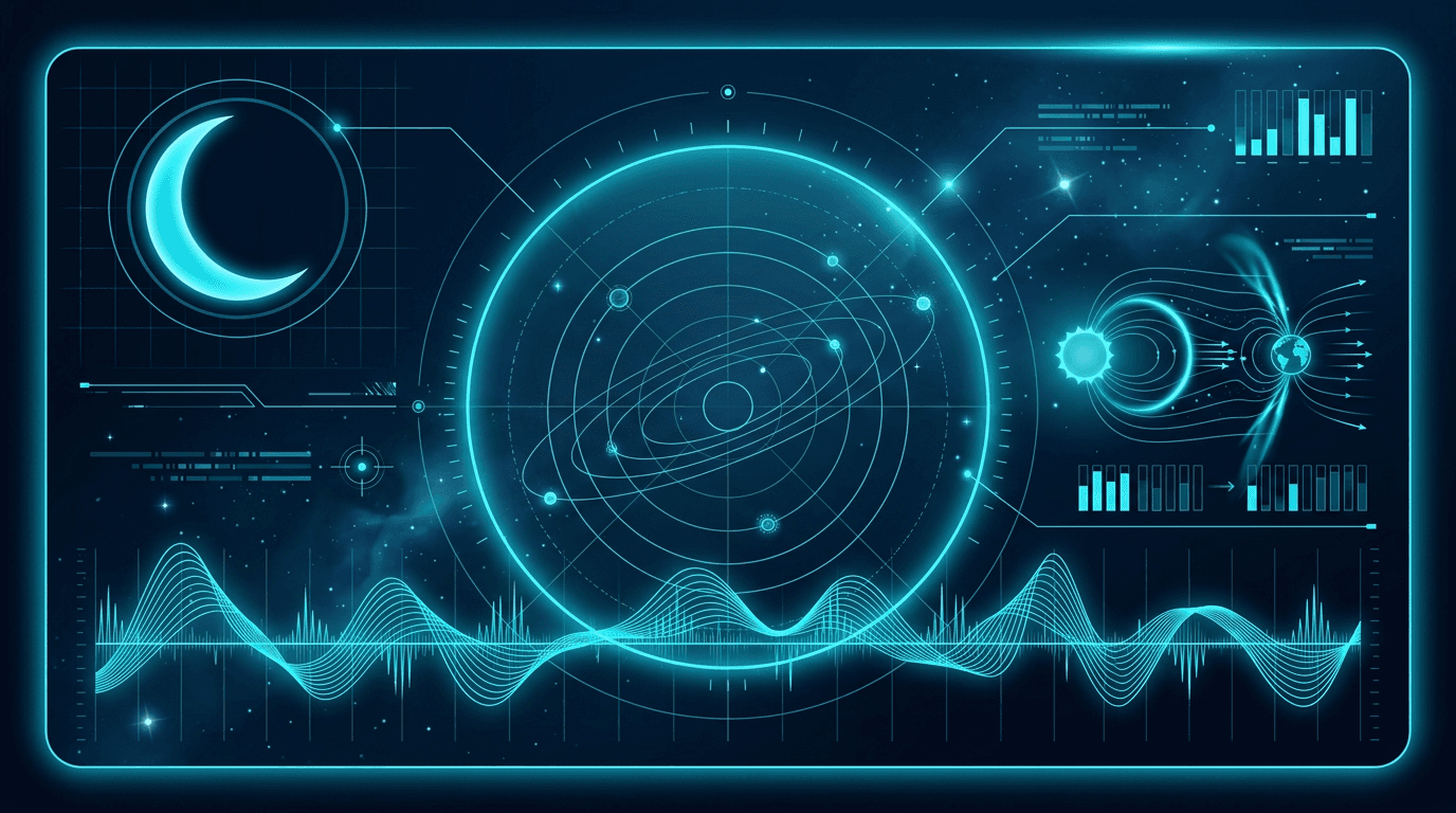 Daily signals from moon phase, space weather, geomagnetic activity and Schumann resonance – clearly presented, multilingual and updated every day.