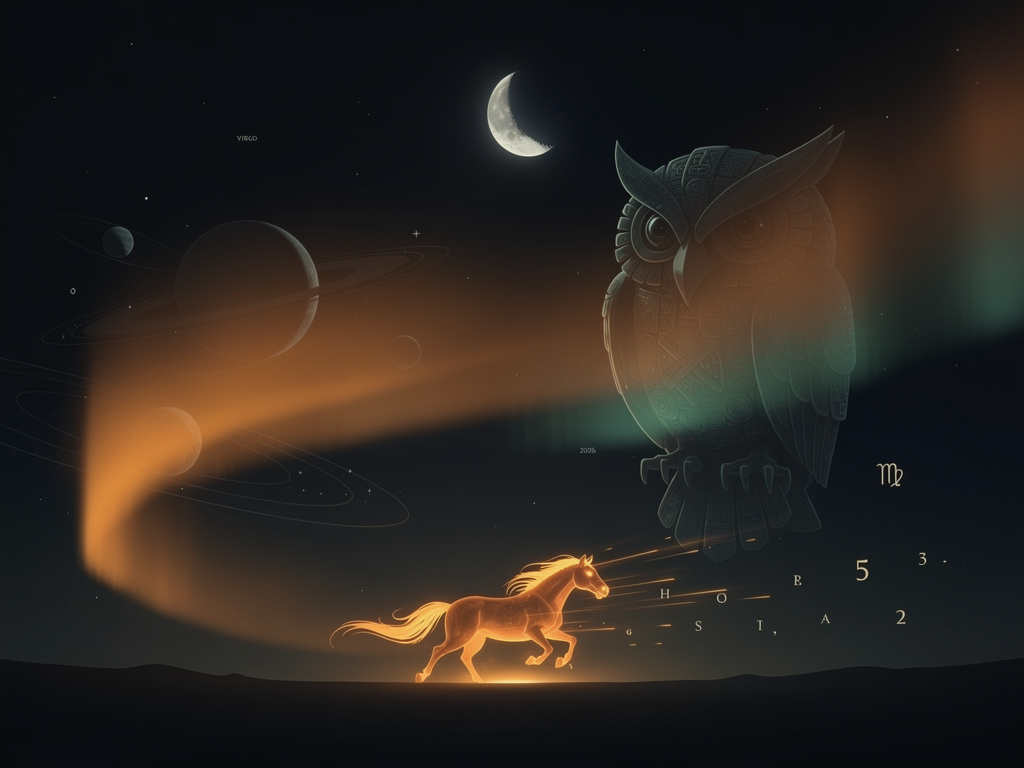 The waning crescent moon moves through Virgo right now, and its quiet, precise energy is asking you to clear what no longer serves — not dramatically, but with the calm satisfaction of someone who knows exactly where things belong. The Mayan Eagle of 3 Men is soaring overhead, lending you a wider view, so even the small acts of sorting and simplifying carry a larger meaning today. The master number 22 is alive in this day, which means the careful, grounded work you are doing right now is not small — it is the foundation of something real and lasting. Space weather is gentle, the Schumann resonance is low and steady, and the Fire-Horse year keeps a quiet fire burning beneath your focus, not wild, but warm and reliable. This is a day that rewards presence over performance, and every deliberate step you take is already building something worth standing on.