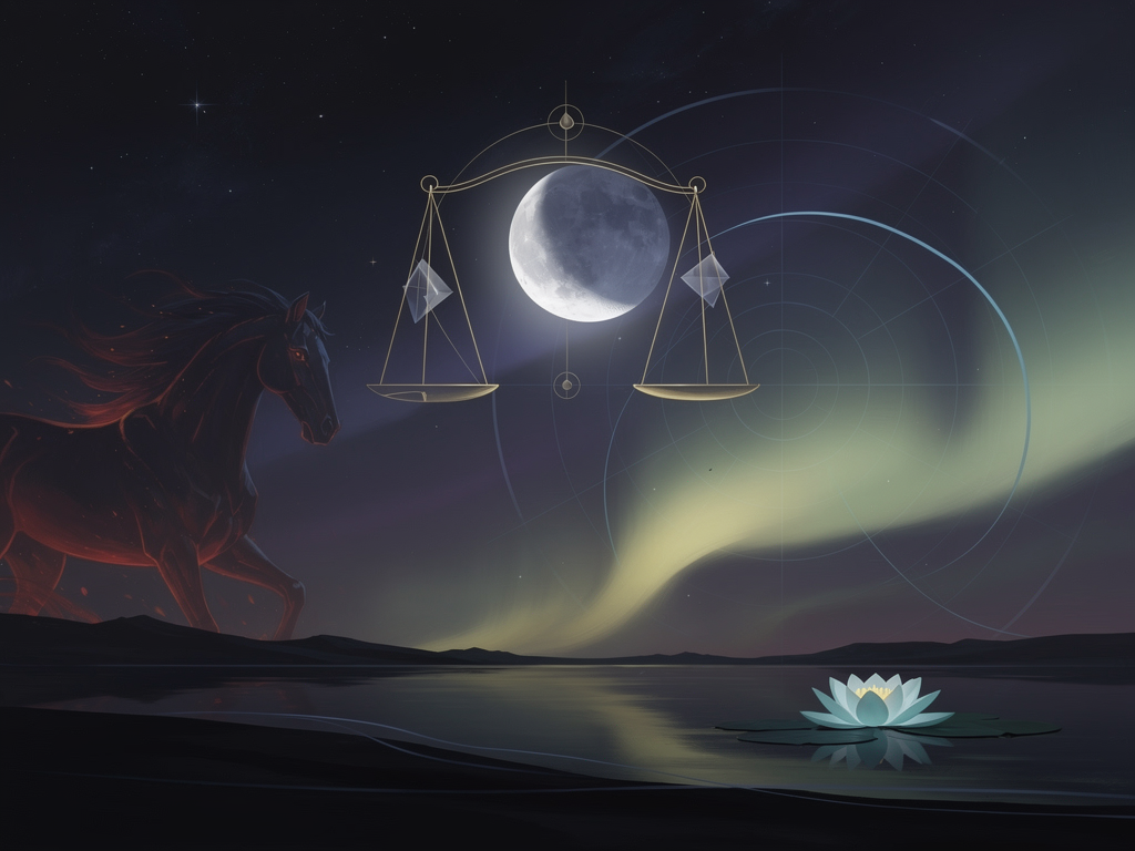 A crescent moon in Libra awakens primal balance as Fire-Horse energy ignites bold new beginnings.