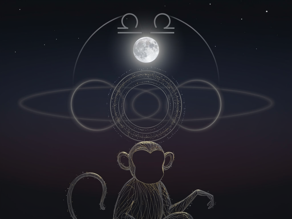 The Full Moon in Libra is traditionally associated with themes of balance, relationship, and aesthetic harmony — a moment of culmination and visibility. The classic Tzolkin day 6 Chuwen is traditionally associated with the Monkey archetype: creative energy, skillful craft, and a playful approach to complexity.