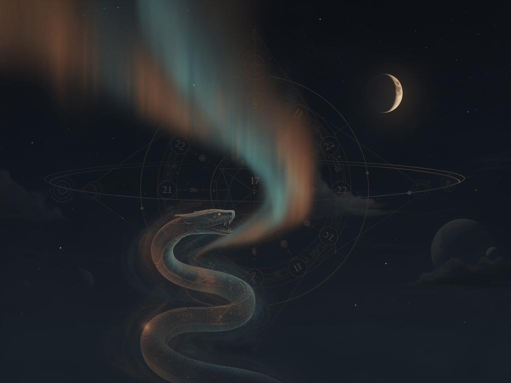 Tying it together: a Kp of 5.7 means Earth's magnetosphere is measurably active, and with the aurora forecast sitting at Amber, those at high — and potentially mid — latitudes have a real chance of witnessing auroral light tonight. The Serpent's transformative symbolism and the Master Builder's 22 energy meet a sky that is, quite literally, electrically alive.